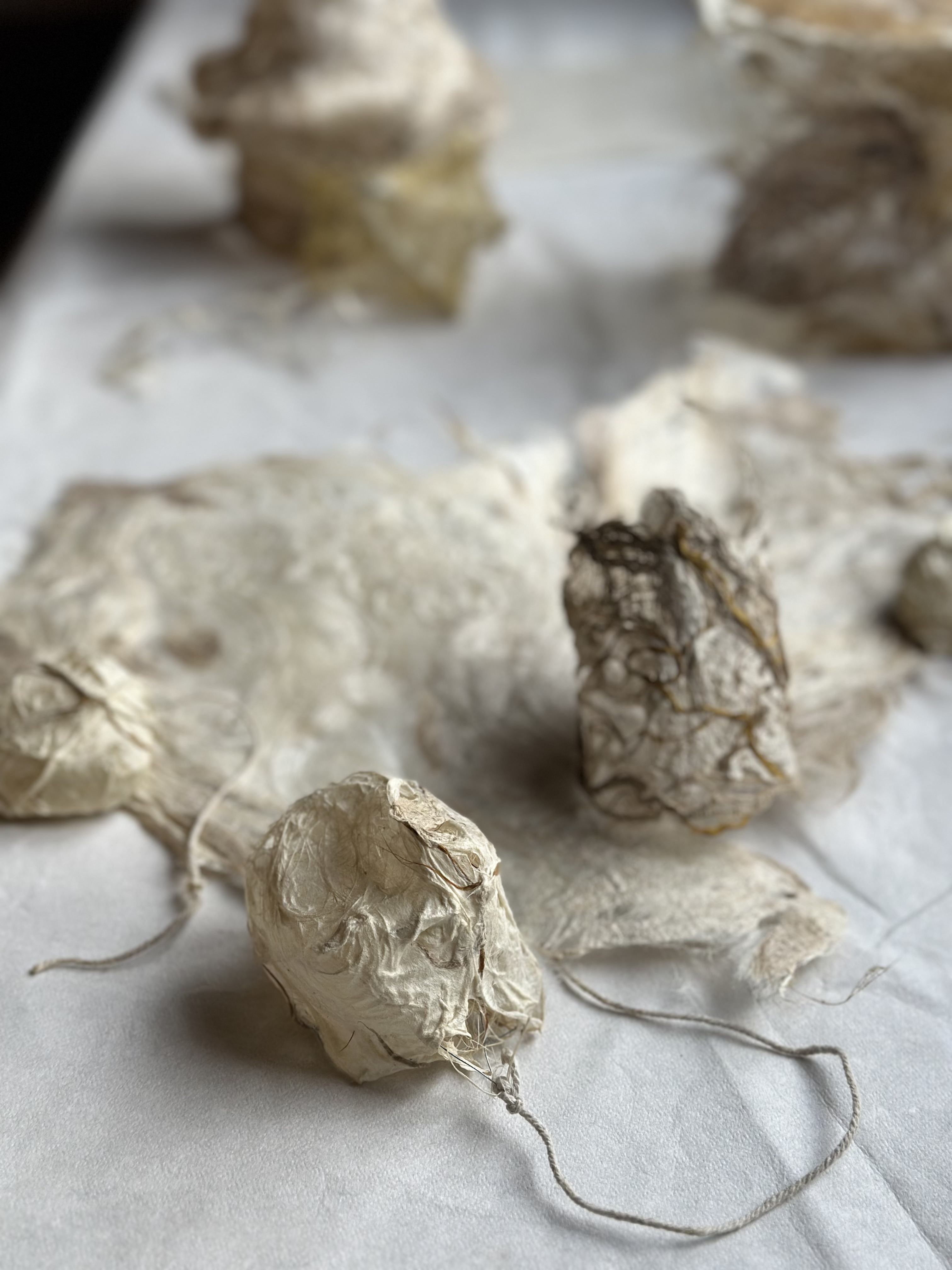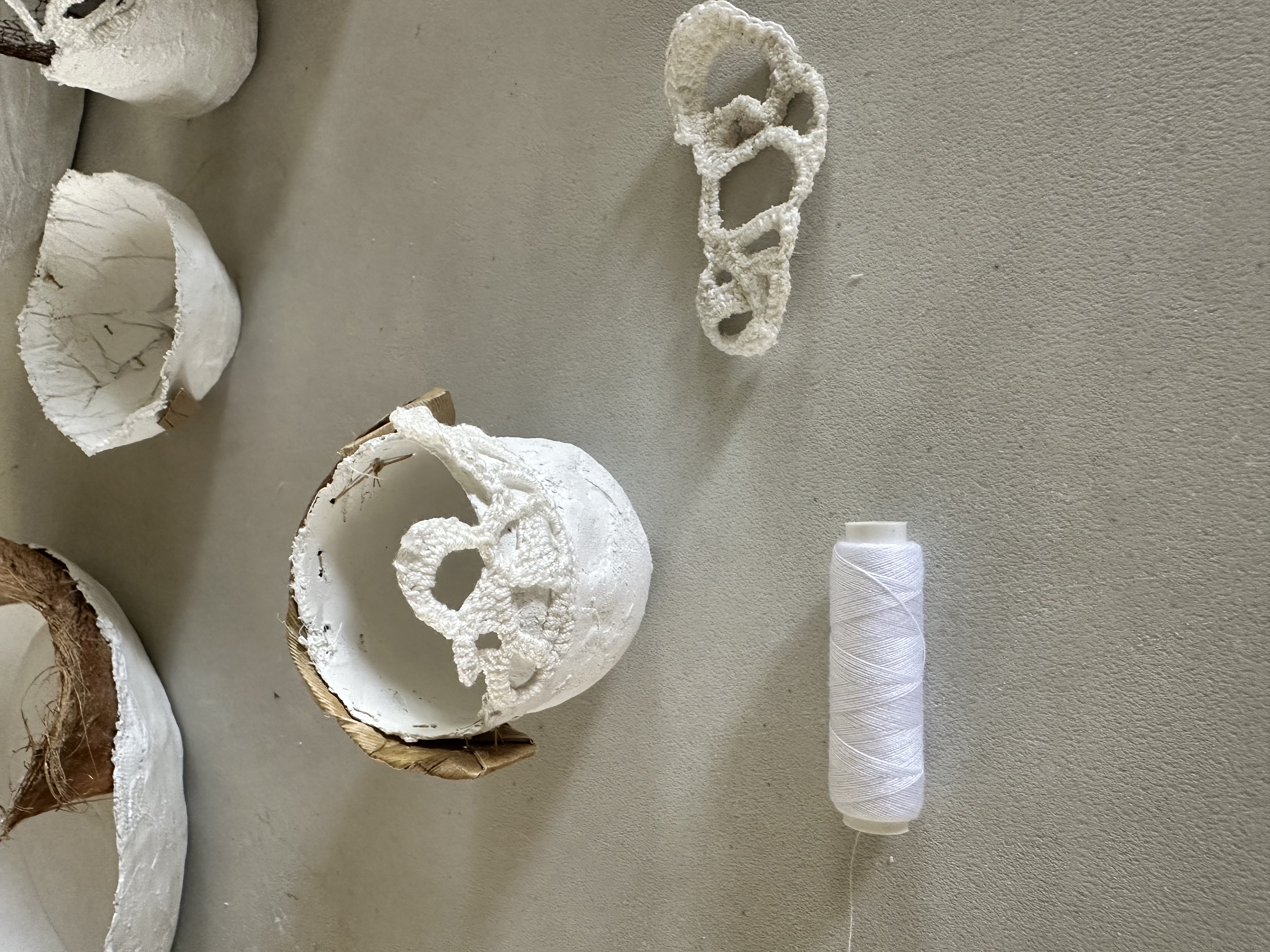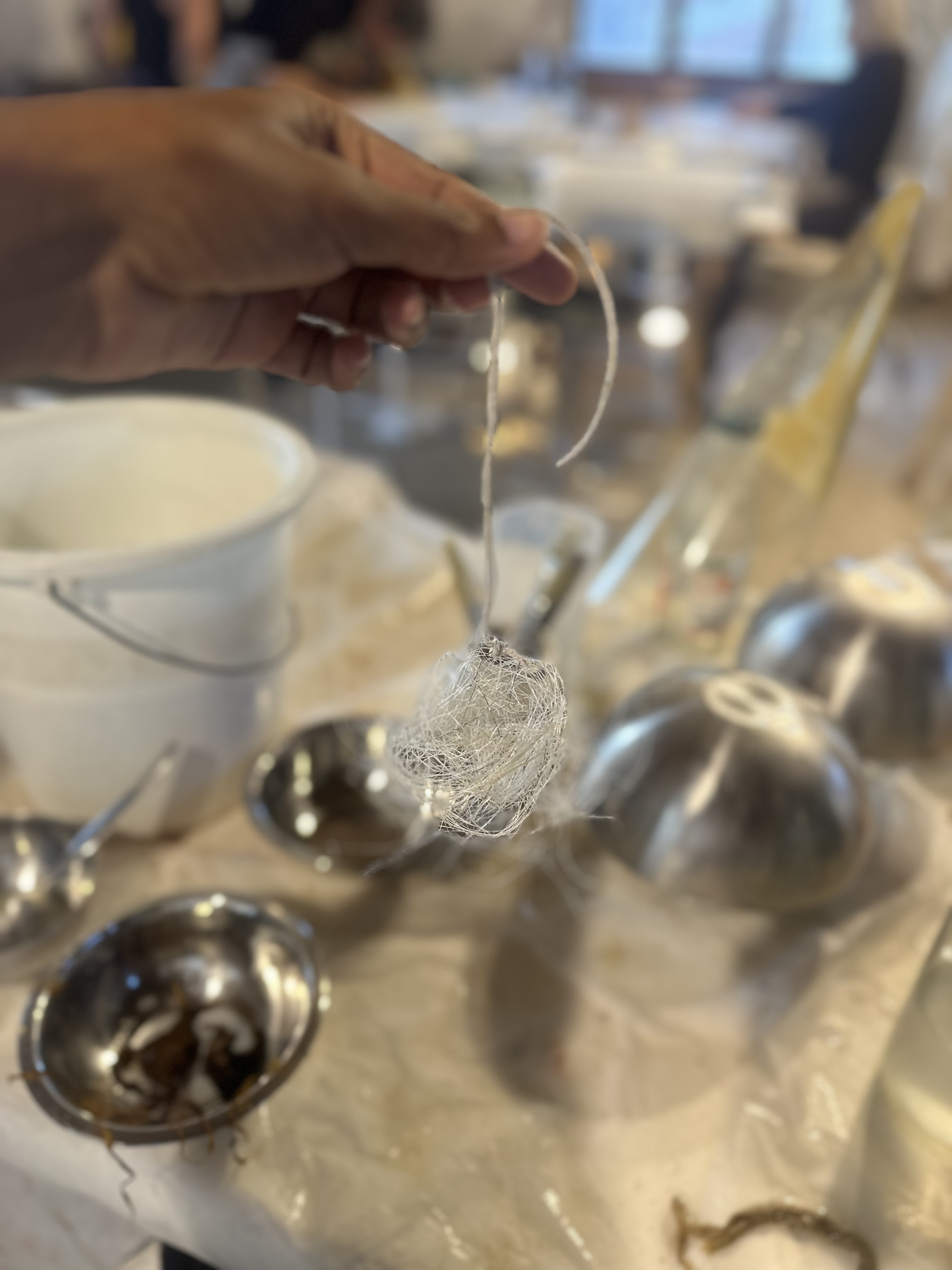 Cette expérience s'est tenue dans l'atelier de l'artiste Aïdée Bernard, à Campagne-sur-Aude. Il s'agissait de se former aux techniques de créations de volumes en dentelles végétales, en passant par la cueillette, la cuisson et la préparation des végétaux, ainsi que le papier végétal.